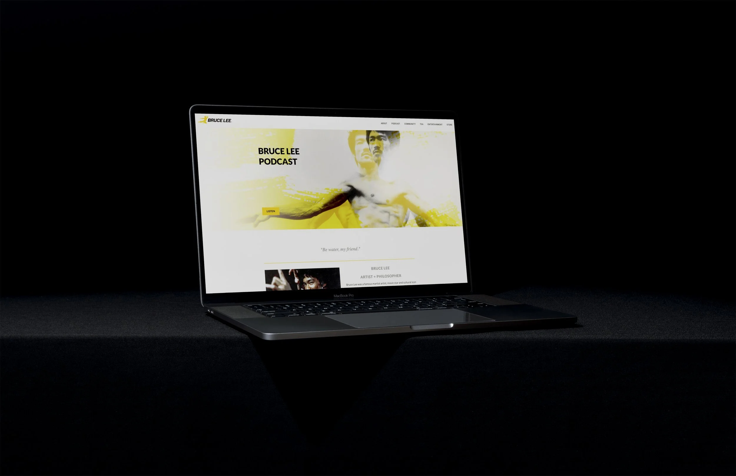The new website was streamlined into a limited color palette of Bruce Lee’s iconic yellow, black, and a crisp white. At the time the company had many projects in the pipeline, one of which was the new podcast: The Bruce Lee Podcast. We wanted to promote the podcast prominently on the homepage and emphasize Bruce Lee the Artist and Philosopher.